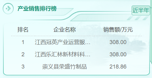 江西乐汇林新材料科技有限公司:与冠英产业并列第一(308 万元),聚焦竹新材料领域(如竹纤维复合材料),依托技术优势抢占高附加值品类市场;