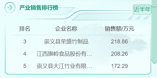 崇义县荣盛竹制品:本地企业代表,交易额 218.86 万元,专注于竹制品加工与销售,体现出崇义本地企业在平台交易中的中坚地位;