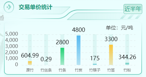 高单价品类:竹炭以 4800 元 / 吨的单价居首,其生产工艺复杂(需经过高温炭化)、应用场景多元(环保吸附、烧烤燃料等),推高了产品附加值;竹签单价 3300 元 / 吨,虽交易体量较小,但因加工精度要求高(需统一长度、粗细),单价仅次于竹炭;