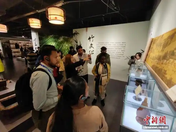 11月13日,“拉美国家‘以竹代塑’产业链发展官员研修班”学员参观江西省林业科竹制品专题馆。中新社记者 姜涛 摄